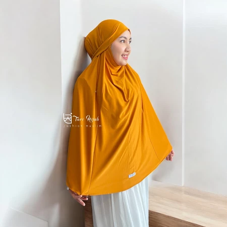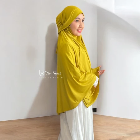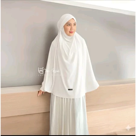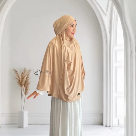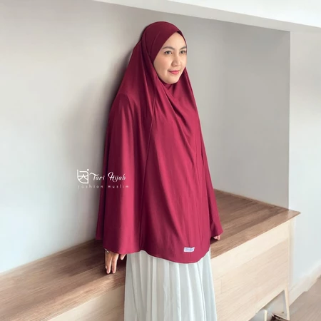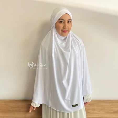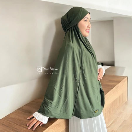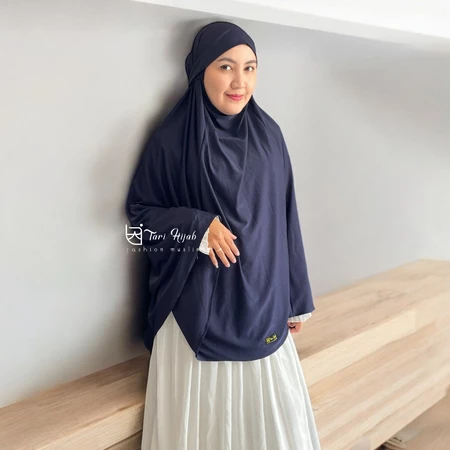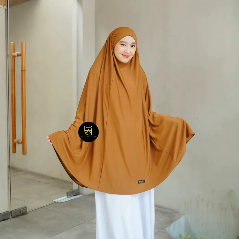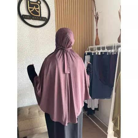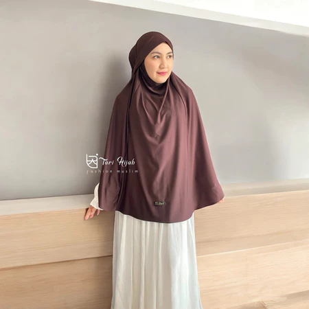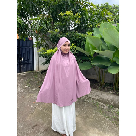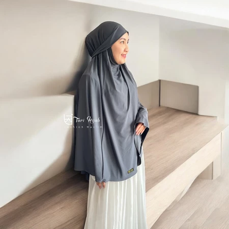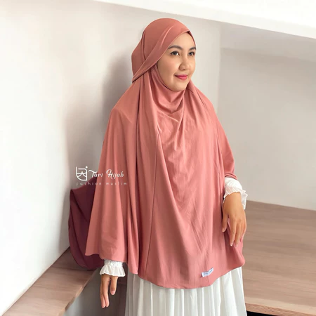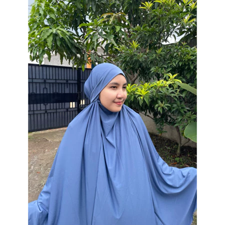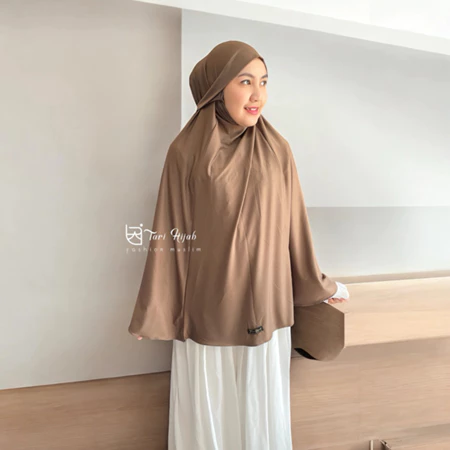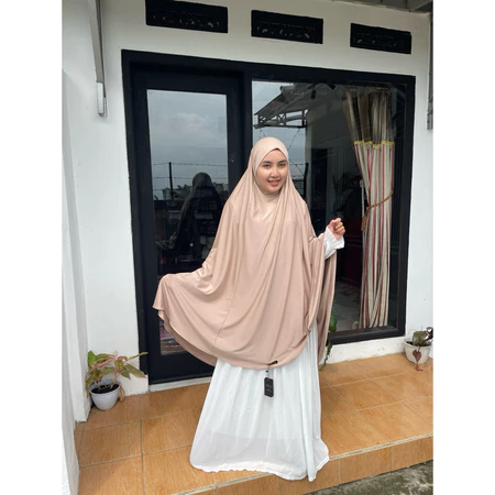 Potongan jumbo yang lebar menutup dada hingga punggung, menjamin aurat terjaga dengan santun dan anggun.